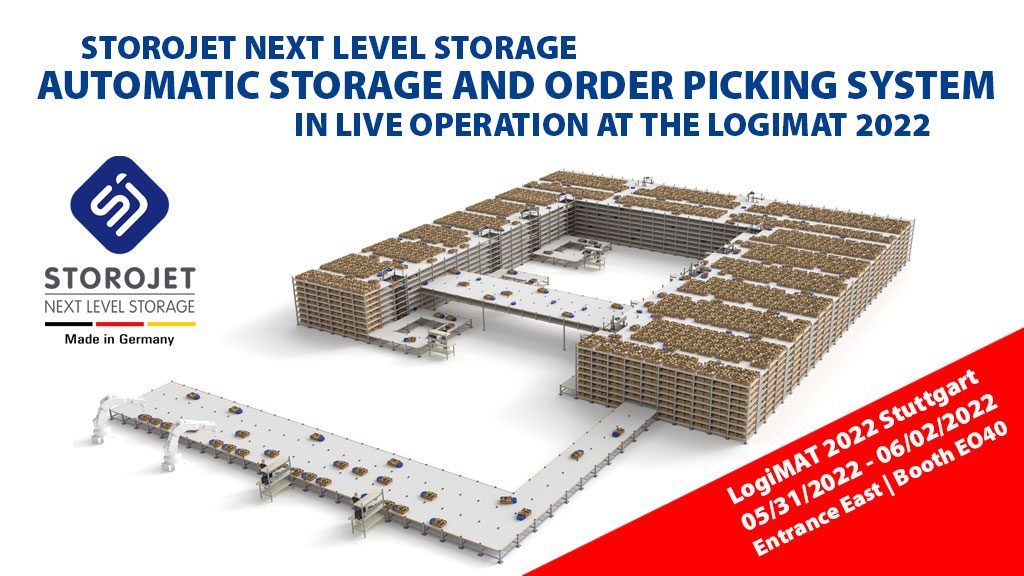 Storojet will once again present the revolutionary storage and order picking system in live operation at LogiMAT 2023. The automatic small parts warehouse system impresses thanks to its high flexibility and offers users the possibility to store a wide variety of goods efficiently even under difficult space conditions. Not only the level distances of the storage tower can be configured with different heights, but also the goods carriers can vary individually in length between 50-90 cm with a width of 50 cm.