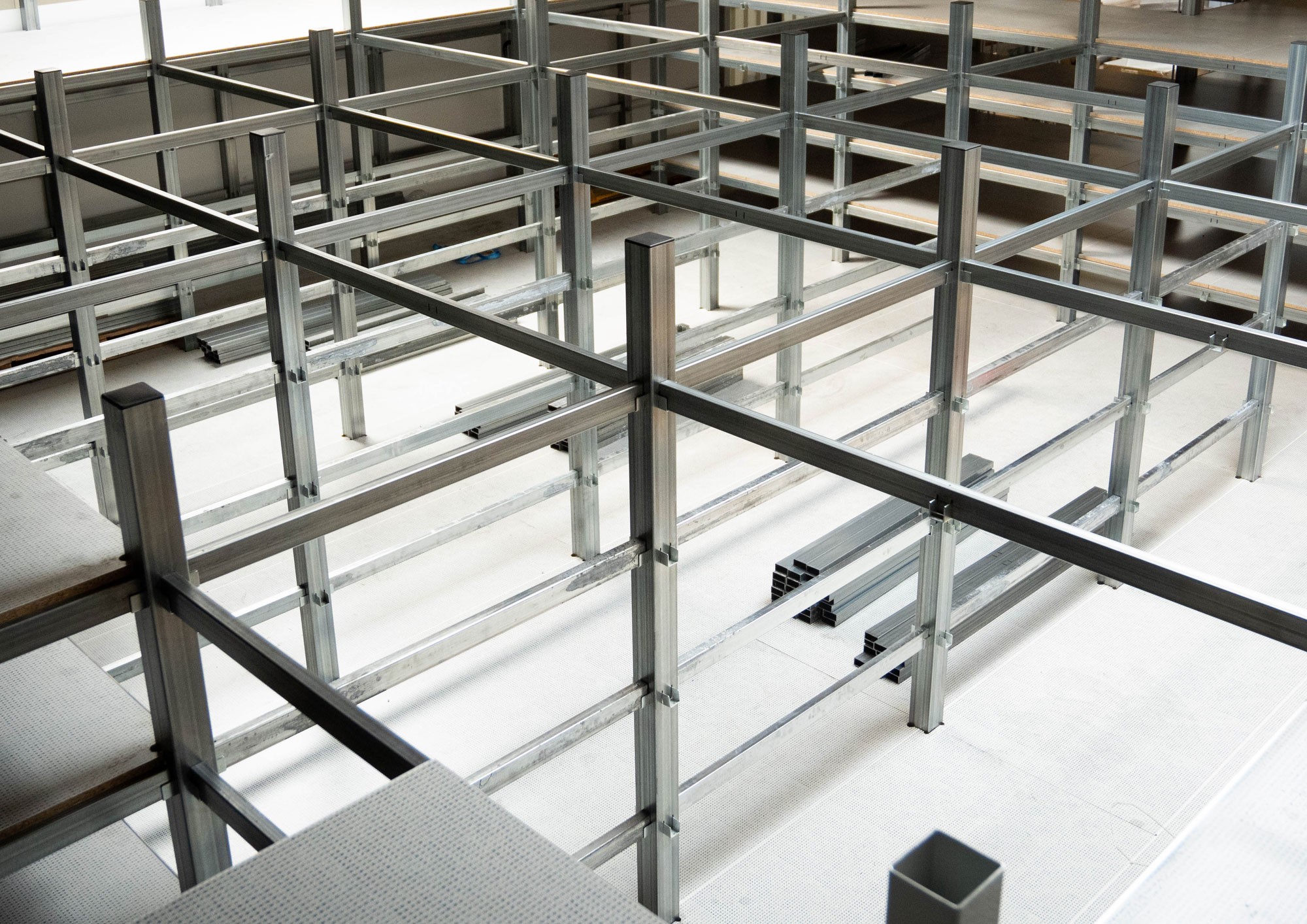 The modular storage rack can be realised up to 12 m in height and offers individual distances of the different levels between 32 and 100 cm. In this way, a maximum packing density can be easily achieved depending on the size of the products to be stored. You will benefit from far better space utilisation than with conventional high-rack warehouses without the need for wide driveways and the use of cost-intensive lifting vehicles and the associated specialist personnel.